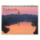Photographic any-year calendar featuring the architectural highlights of Yangon, Myanmar (Burma). Yangon (formerly known as Rangoon) is the largest city in Myanmar (formerly Burma). A mix of British colonial architecture, modern high-rises and gilded Buddhist pagodas define its skyline. Its famed Shwedagon Paya, a huge, shimmering pagoda complex, draws thousands of pilgrims annually. The city's other noteable religious sites include the Botataung and Sule pagodas, both housing Buddhist relics.