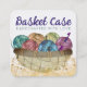 Fun, colourful basket of yarn and crochet hooks with faux gold stars and sparkles on this business card for a chrocheted and yarn crafts, or homespun yarns.