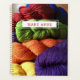 Skeins of yarn in green, orange, purple, yellow, and red colours.
