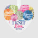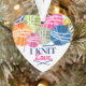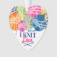 Cute Christmas ornament for knitters featuring colorful, fluffy balls of yarn, bold text and knitting needles, perfect for yarn crafter or homespun divas, too.