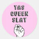 This artwork features a cartoon style poster with the quote "Yas Queen Slay” and raised clenched female fist.