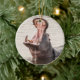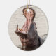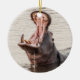 Ceramic decorative ornament with an image of a hippopotamus in a lake yawning with it's mouth wide open on both sides.