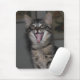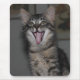 This mouse pad features our grey striped kitten, Caspian, in the middle of a big kitten yawn. Her mouth is turned up in a smile and her long pink tongue is fully extended from her mouth showing her toothless gums. This mouse pad is perfect for every cat lover.