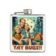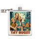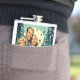 The flask itself is fine. It’s a cheap flask, obviously bought in bulk, however am prepared to overlook that. Given that it is a personalized item, I would have liked to have seen gift boxing instead of the generic packaging. Terrible printing, and/or quality. It’s a cheap, tacky vinyl. It is not cut straight and is also applied in a way that it is overhanging the bottom, causing the glue to catch on items and it will eventually roll and tear, damaging the wrap.