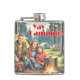 The flask itself is fine. It’s a cheap flask, obviously bought in bulk, however am prepared to overlook that. Given that it is a personalized item, I would have liked to have seen gift boxing instead of the generic packaging. Terrible printing, and/or quality. It’s a cheap, tacky vinyl. It is not cut straight and is also applied in a way that it is overhanging the bottom, causing the glue to catch on items and it will eventually roll and tear, damaging the wrap.