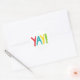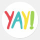 Yay! design is simply the word in large hand drawn lettering and multiple colors, Express your feelings of yay!