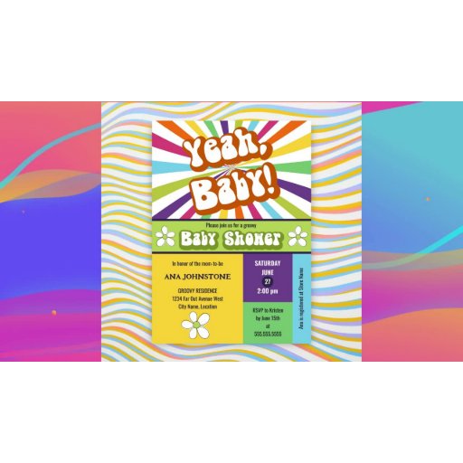 © 2024 Socialite Designs. Celebrate the upcoming arrival of a little one with this customisable "Yeah, Baby!" baby shower invitation. Featuring a retro, colourful design, this fun and one-of-a-kind invitation is sure to set the tone for a memorable event. Personalise the invite to your liking and get ready to shower the mum-to-be with love and excitement.