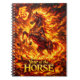 This notebook features digital artwork of a fiery horse rearing up on two legs paired with the text: "Year of the Horse" - Chinese zodiac themes. For 2026, the animal is a horse and the element is fire, and in this dynamic artwork, both are combined in a black and orange art piece with Chinese architecture and a glimpse of the galaxy in the background. It also includes the Chinese symbol for 'horse.'