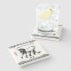 The coasters are gorgeous, a quality feel and heavy weight. They look like a precious archeological find. A rustic stone juxtaposed with a modern floral black and white print. I like the way the print goes slightly imperfect on the cut stone edges giving them a kind-of natural beauty.