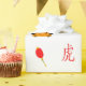 Year of the tiger illustrated with cartoon tiger and Chinese calligraphy character.