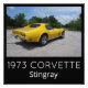 This square photo enlargement a yellow 1973 Corvette Stingray will look great with a frame on the wall in that Vette lover's home or office.
