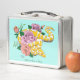 This is a standard metal lunchbox that appears to work just fine. We designed this box ourselves with an uploaded photo and custom text on the front and back. It looks absolutely beautiful except the front of the lunchbox is not centered like it shows in the photo. The print borders don't align with the inset flat part of the box where the preview photo online showed it perfectly centered in there. The back looks nice and centered though.