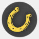 Cool, sleek, Yellow Amber horseshoe clip art on black and dark grey textured background. Great gift for cowboys and cowgirls that love horses! Add your name or text to personalise it! Images used on this item are licensed and © Graphics Factory.com