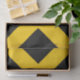 Reminiscent of hazard tape, alternating yellow and black chevrons (V shapes) converge in this bold geometric pattern designed from scratch.