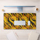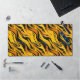 This desk mat has a cool yellow and black pattern on it.