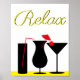 with a pop of red with the text, "Relax," with a graphic of a glass of cocktails. Modern sleek look will add a pop of color to your kitchen.