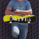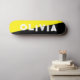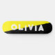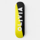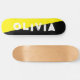 simple yellow and black skateboard for him, for her or for them is your personalized name in a bold funky and grunge distressed lettering. Get the prefect abstract design for a teen birthday or Christmas present. Just write your own name for a custom skateboard.