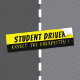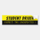 A yellow and black warning bumper sticker for driving school instructors to let the vehicles behind them that an inexperience driver is behind the wheel . The main text reads "Student Driver" in bold black letters . The secondary text reads "Expect the unexpected !" in thinner , all cap , yellow letters .