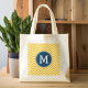 Yellow and Blue Chevron Pattern with Monogram Tote Bag