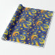 Yellow and Blue Starry Night Mosaic Glass Pattern Wrapping Paper