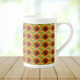 Enjoy a cup of coffee, tea, or hot chocolate in this pretty, bone china mug that features a wrap-around photo image of a yellow and bronze coloured Sunflower bloom and printed in a repeating pattern. A lovely, floral design!