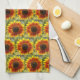 Yellow and Bronze Sunflower Floral Pattern Tea Towel