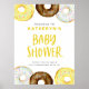Welcome guests to your event with this customisable baby shower welcome sign. It features watercolor yellow, white and chocolate doughnuts with colourful sprinkles. Personalise this by adding your details. This doughnut baby shower sign is available in other colours.