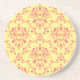 Yellow and Cranberry Pink Damask Coaster