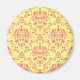 A classic, elegant damask design pattern in pastel buttery yellow and cranberry pink.