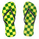 Cheerful yellow and green squares flip flops. Also see the matching neck tie or bandanna.