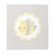 The cutest little yellow and grey striped, kawaii style, baby bee is on a grey background with white polka dots. The little bee is sitting inside a white frame, with light yellow petals around the outside.