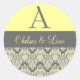Yellow and Grey Damask Wedding Monogram V2 Classic Round Sticker