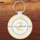 Yellow and Navy Blue Chevron Monogram Key Ring