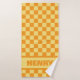 This contrast orange and yelllow chequerboard towel can be customised with a name, making it a special personalised gift. Whether you're heading to the beach, chilling by the pool, or having a picnic in the park, these towels are vibrant, useful and stylish. These towels not only serve a practical purpose but also make for a heartfelt gift, as they can be customised with the recipient's name.