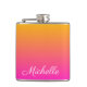 The flask itself is fine. It’s a cheap flask, obviously bought in bulk, however am prepared to overlook that. Given that it is a personalized item, I would have liked to have seen gift boxing instead of the generic packaging. Terrible printing, and/or quality. It’s a cheap, tacky vinyl. It is not cut straight and is also applied in a way that it is overhanging the bottom, causing the glue to catch on items and it will eventually roll and tear, damaging the wrap.