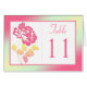 This pink, yellow, green, and white floral table number card matches the invitation and other items shown below. You must change the number "11" to each of the numbers you need, add each one to your cart, and then repeat the process until you have the correct amount of individual cards in your cart. If you require any other matching items, please email your request to niteowlstudio@gmail.com.