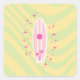 Yellow and Pink Surfboard, Beach Art, Preppy Square Sticker