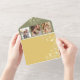 Introducing our vintage-inspired, chic, and romantic all-in-one spring wedding invitation, beautifully designed in soft yellow and sage green hues. Accentuated with delicate faux gold flowers, this invitation exudes timeless romance and refined elegance. Celebrate your unique love story with a design as unforgettable as your special day. Personalise it with up to three photos of the couple, and enjoy the convenience of a QR code for seamless RSVPs and easy access to all wedding details. No envelope required—simply add your return address, seal it, and send with love and joy!