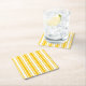 Yellow and white candy stripes square paper coaster