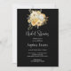 The deep, rich shade of black serves as a bold canvas, providing a striking contrast to the romantic and feminine white and yellow floral arrangement at the invitation's centre. The bouquet, adorned with lush greenery, captures the essence of love and new beginnings, making it a perfect symbol for a bridal shower celebration.
