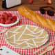 Yellow and white mosaic pattern paper plate