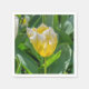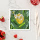 A beautiful close up photograph of a yellow and white tulip printed on napkins.