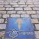 Yellow arrow marking the Way of Saint James (Camino de Santiago), Logroño, La Rioja, Spain