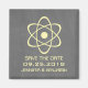 Cute and nerdy Atomic Chalkboard Save the Date Magnet featuring a simple atomic symbol in yellow on a chalkboard look background. This geeky and fun save the date magnet is perfect for announcing your science themed wedding! Easy to customise, simply add the details of your wedding in the spaces provided. Click "Customise It" to find more personalisation options.