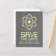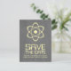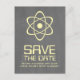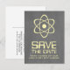 Cute and nerdy Atomic Chalkboard Save the Date Postcard featuring a simple atomic symbol in yellow on a chalkboard look background. This geeky and fun save the date postcard is perfect for announcing your science themed wedding! Easy to customise, simply add the details of your wedding in the spaces provided. Click "Customise It" to find more personalisation options.