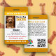 Vertical service dog badge for your autism support dog in yellow. Easily customisable with an ID photo of the dog helping you navigate the world as an autistic person, the dog's name and information (like breed, registration number, and microchip number), the name of the handler and your phone number and address in case you and your dog get separated. Additional text you can customise after your needs on both sides of the service dog ID badge, with a QR code and a logo template on the back.