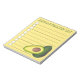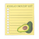 List-style grocery shopping note pad design features an original marker illustration of a green and yellow avocado. Ideal as a gift for a chef or foodie.