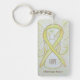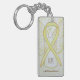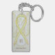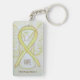 The guardian angel keychain features the art of a yellow awareness ribbon angel painting. The key chain has the word "HOPE" and space below to customise with your own personal cause name. The word "HOPE" could also be changed to "CURE". The yellow awareness angel ribbon art keychain can be customised with personalised messages to make great cause keychains for fundraisers, awareness gifts, or other special events or occasions.