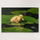 Yellow Baby Duck Floating on Lily Pads Jigsaw Puzzle