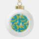 Yellow bananas, blue background pattern ceramic ball christmas ornament